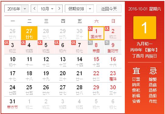 2016年國慶節即將來臨,根據國務院辦公廳國辦發明電〔2015〕18號《國務院辦公廳關于2016年部分節假日安排的通知》的相關精神,現將2016年國慶節放假通知如下:
