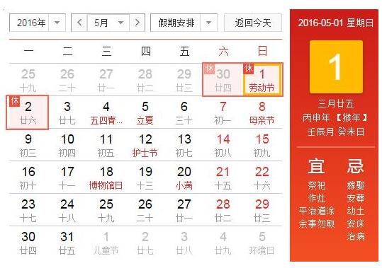 大家好!五一國際勞動節將至,根據《國務院辦公廳公布2016年放假安排》,結合公司的實際情況,現就2016年五一放假安排通知如下:4月30日(星期六)至5月2日(星期一)共3天.5月3日(星期二)正常上班.