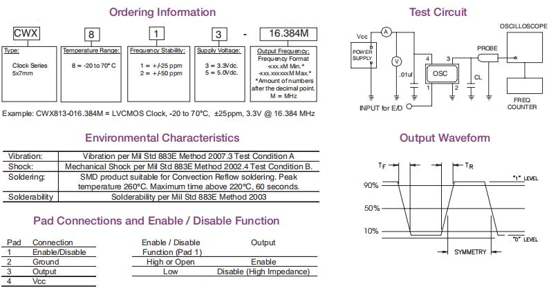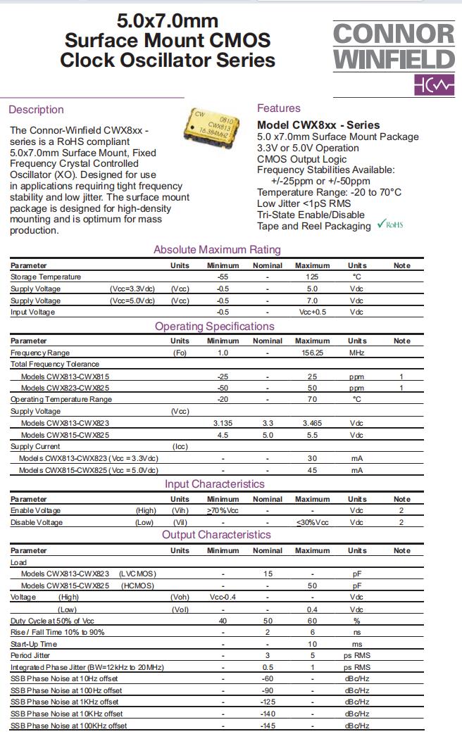 CWX813-080.0M,ConnorWinfield無鉛環保晶振,7050mm有源晶振,無線應用晶振,參數表