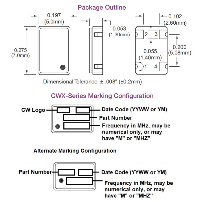CWX813-080.0M,ConnorWinfield無鉛環保晶振,7050mm有源晶振,無線應用晶振,尺寸圖
