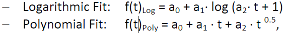 所獲得的測量值應使用最小二乘法擬合以下函數之一: