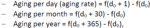 其中f(t)是老化近似值a)或b)之一,其中擬合參數a0,a1和a2以及d0是老化測試的最后一天加上30天.