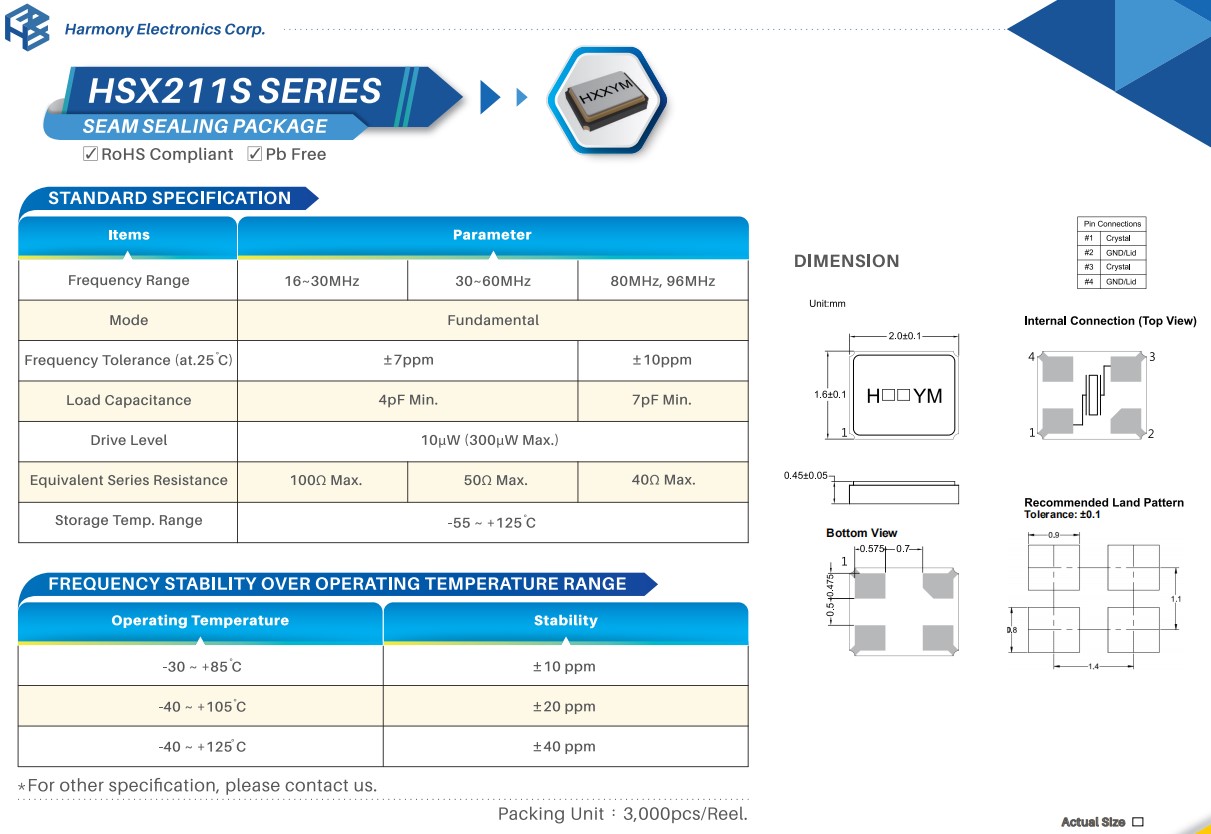 | X2C016000B81H-HPU | HSX211S-AU | H.ELE加高 | SMD Crystal Resonators SMD-2016 RoHS |