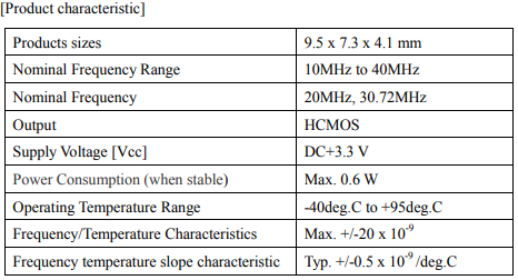(*1)該特性表示恒溫晶振相對于溫度變化的溫度特性,數值越小,頻率隨環境溫度變化的變化越小.