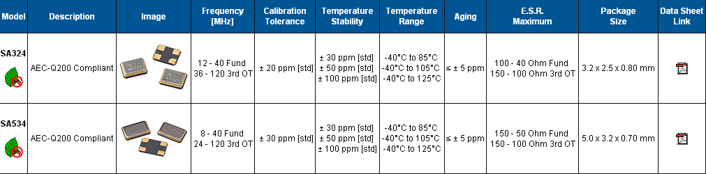 | 頻率公差@ 25°C | ±10ppm, ±15ppm, ±20 ppm, ±30 ppm, ±50 ppm | ||||