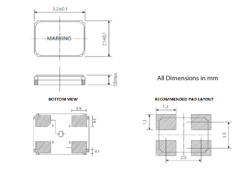 | 頻率溫度特征 | f_tem | ±30 × 10-6/-20°C ~ +70°C | 超出標準的規格請聯系我們. |