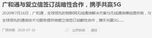 廣和通5G生態鏈商業拓展總監陶曦表示,愛立信是全球知名的ICT行業領軍企業之一,也是全球5G網絡設備主流提供商.廣和通很高興與愛立信在5G通信端到端業務解決方案,5G專網以及工業4.0等方向上達成戰略合作.未來,雙方將通過品牌宣傳,產品聯合推廣,測試服務等方式多點合作.整合優勢資源和技術,以實際行動攜手推動5G產業生態發展.愛立信東北亞區首席市場官張至偉表示:中國5G的商用大幕已經拉開,回顧之前每一代通信技術的發展,我們看到,只有當芯片,模組,終端,網絡和應用達到端到端的互聯互通,5G的這一發展速度令人驚喜,隨著5G網絡技術的成熟發展,廣和通與愛立信在5G垂直行業,如:智慧工廠,智慧城市,智慧醫療,智慧教育,金融,政府等項目中開展深入合作,共同參與整體解決方案設計并為客戶提供一體化解決方案,幫助客戶縮短項目部署時間,實現投入產出最大化.