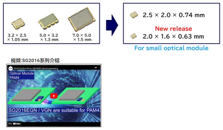 疫情開創了遠程工作和遠程學習的“新常態”,導致數據流量加速增長。網絡基礎設施對維持這一趨勢變得越來越重要,對安裝在數據中心內部的光模塊有著巨大的需求。愛普生一直通過石英晶體振蕩器SG2520系列支持這一點,該系列在2.5 x 2.0 mm的小尺寸中提供低抖動和高穩定性。光學模塊正在向更高的數據速率發展,如400G、800G和更高。這些模塊需要更小的晶體振蕩器來容納更大的DSP。愛普生提供更小的2.0 x 1.6毫米晶體振蕩器,其性能與當前的2.5 x 2.0毫米有源晶振晶體振蕩器相同,如低抖動和高穩定性。憑借這一新產品,愛普生能夠在客戶的設計中實現更靈活的布局,提高設備的性能。愛普生的這些變化符合我們通過技術進步造福社會的承諾。