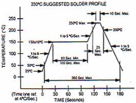 詳細(xì)信息:波峰焊,焊錫浴溫度為260ºC±5ºC,曝光時間為10±1秒。將1-4ºC/s預(yù)熱至焊接溫度100ºC(25±6mm/s)