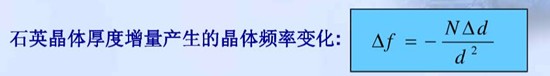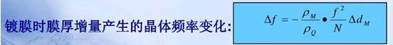 對于一種確定的鍍膜材料,為常數,在膜層很薄即沉積的膜層質量遠小于石英芯片質量時,固有頻率變化不會很大這樣我們可以近似的把S看成常數,于是上式表達的石英晶體頻率的變化人行與沉積薄膜厚度△dM有個線性關系因此我們可以借助檢測石英晶體諧振器固有頻率的變化,實現對膜厚的監控。